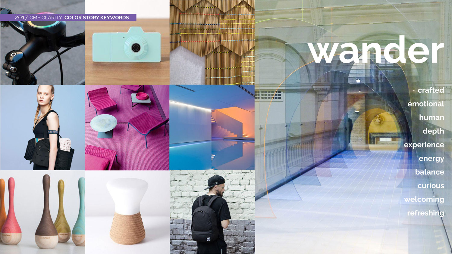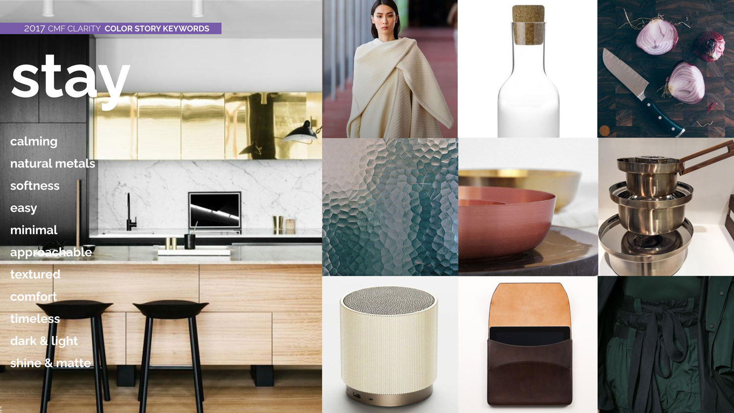 Clarity is about an experience that can evoke comfort and curiosity when expressed through materials that are modern and approachable, in colors that are culturally crafted.
