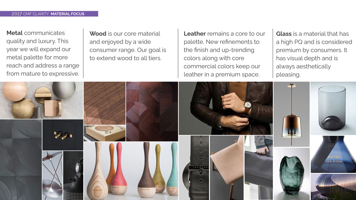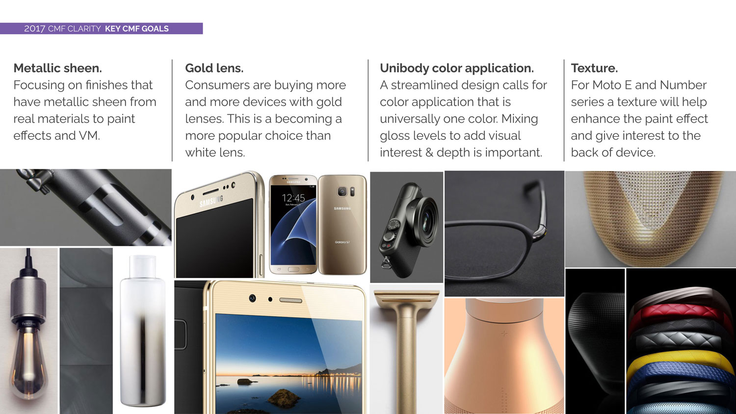 Once the themes were established, we defined a creative direction for Color, Material, and Finish—setting clear CMF goals and outlining specific exploration methods and frameworks to guide the design response to key drivers identified in the consumer mindset.